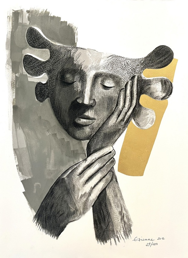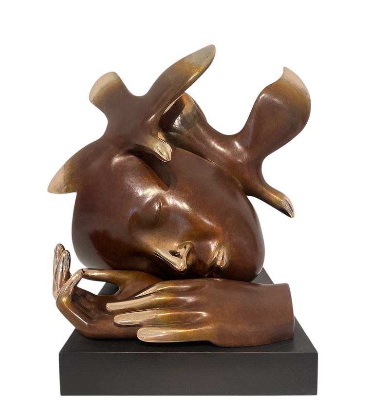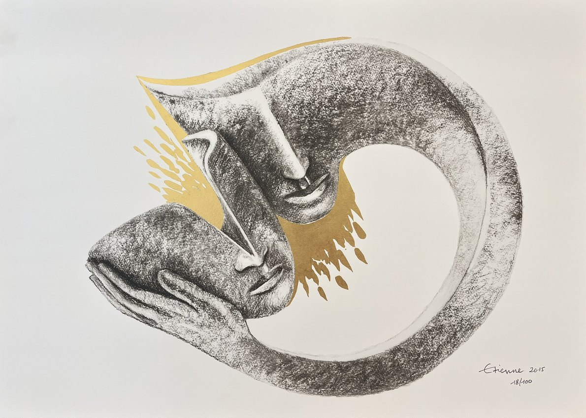 Figure majeure de la sculpture contemporaine, Etienne Pirot dit Etienne est né à Grenoble en 1952. Le fils du célèbre peintre Arcabas passe sa jeunesse et son adolescence dans le Dauphiné avant de poursuivre ses études universitaires à Ottawa, puis d'obtenir une licence d’arts plastiques à Marseille et d’entrer à l’École Nationale Supérieure des Beaux-Arts à Paris. A l'âge de 20 ans, il entame une carrière qui le conduira aux quatre coins du monde avec notamment ses sculptures monumentales, commandes d'institutions privées et publiques (Musée d'art moderne de Guangzhou, La Havane, Paris, Michelin, Bouygues...).Après avoir expérimenté le bois, la pierre et le marbre, Etienne décide de travailler le bronze, qu'il ne quittera plus jamais. "Au départ, je suis un tailleur, mais un tailleur qui a besoin de ce vide. La pierre, le bois, et les autres matériaux ne me permettaient pas d'évider comme cela. C'est pour cela que je me suis tourné vers le bronze qui m'a permis d'enlever de la matière afin de suggérer dans les vides", racontait-il à une interview à la télévision. Etienne découpe ses sujets, les purifie, les fend jusque dans leur essence - une main, un visage, un regard - afin d'atteindre une harmonie constante, équilibrée, à la fois constructive et expressive. En plus de ce travail du vide, le sculpteur affectionnait tout particulièrement la diversité chromatique que peut prendre le bronze poli et patiné.